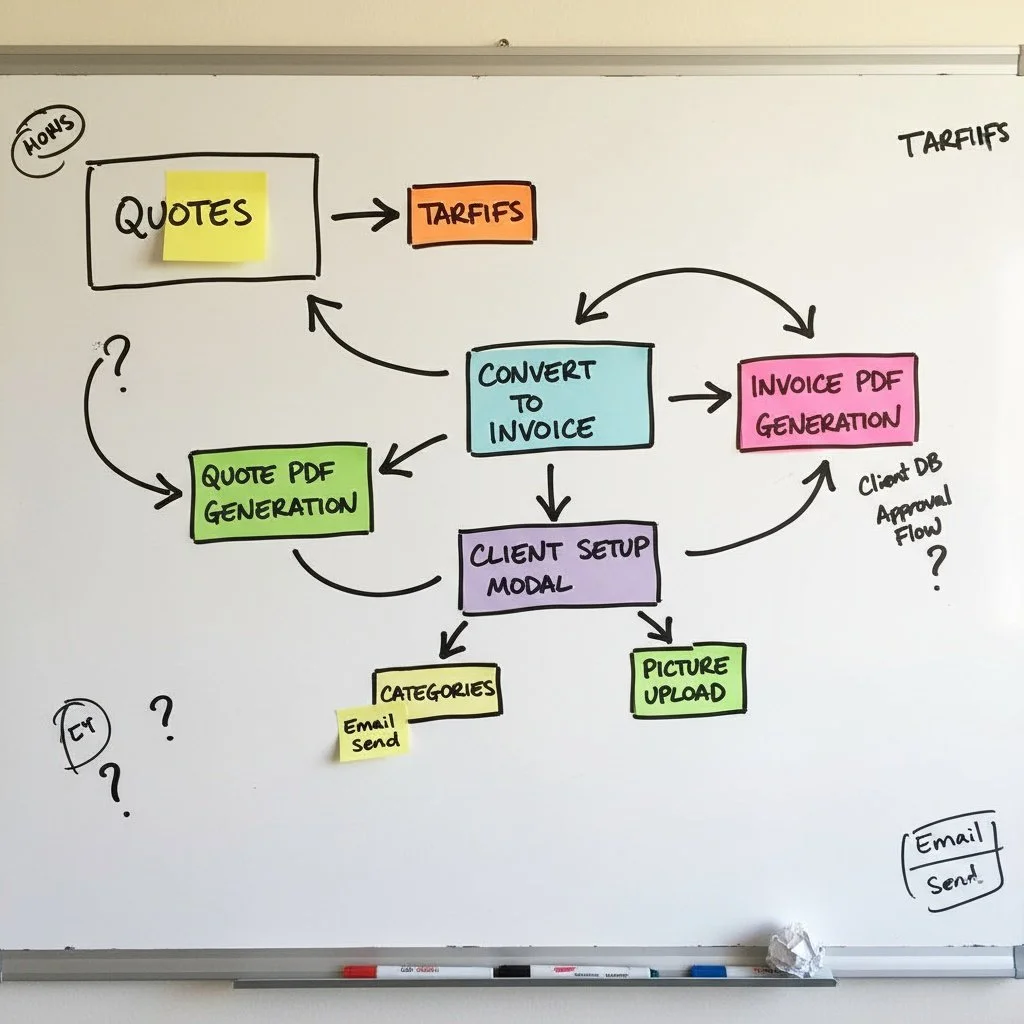 A simple, clean quoting and invoicing app. Photo support. Grouped line items. Subtotals and totals. Tariff management. One-click quote to invoice. Payment and deposit tracking.